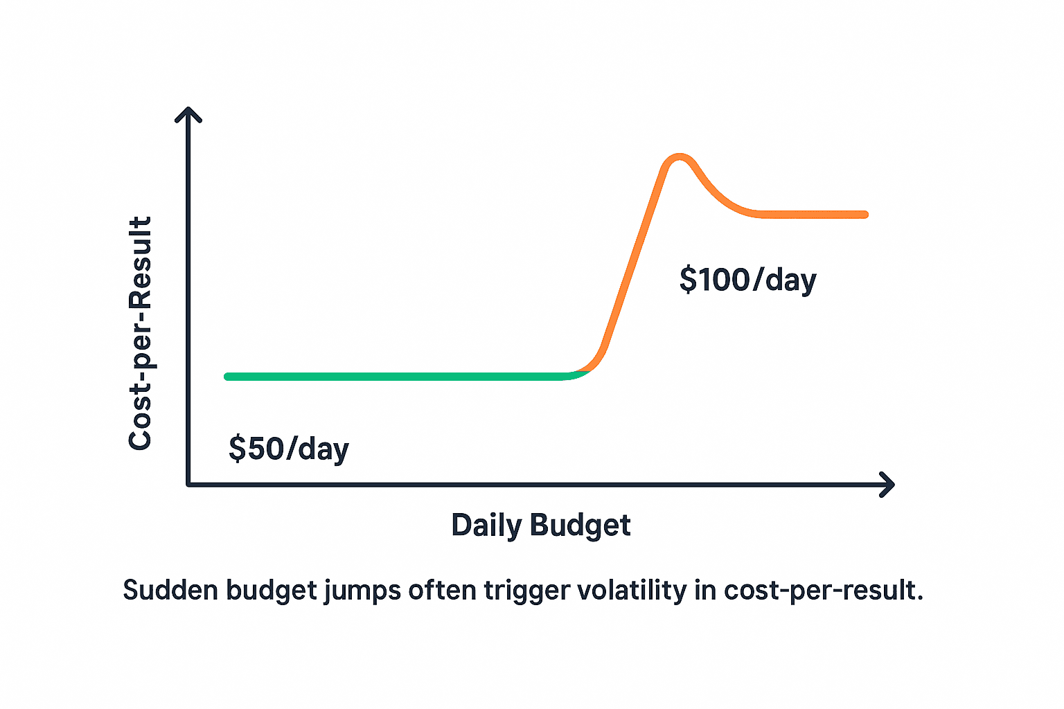 If you increase the budget too quickly (for example, doubling overnight), you create what we media buyers call a “budget shock.” The system is forced to re-enter auctions more aggressively without enough time to adapt.